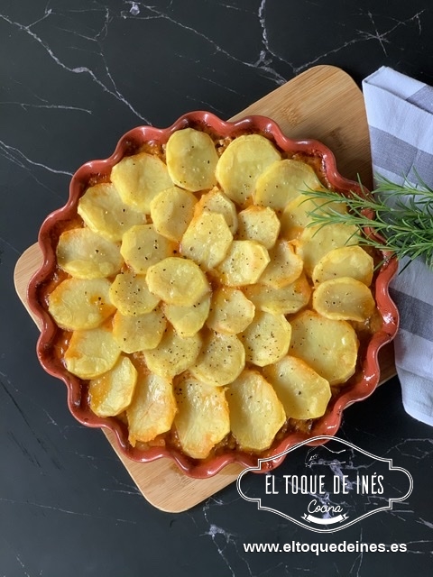 Le había echado el ojo a esta receta la primera vez que la vi, pero tras hacerla dos amigas mías y gustarles muchísimo, hoy me animé y mamma mia!!! Está riquísimo y además muy fácil de hacer. Solo que en vez de 20-25 minutos en el horno, lo tuve 30 para que las patatas se ablandasen mejor y le añadí un poco de queso para fundir por encima (gran idea, mi Encarni).