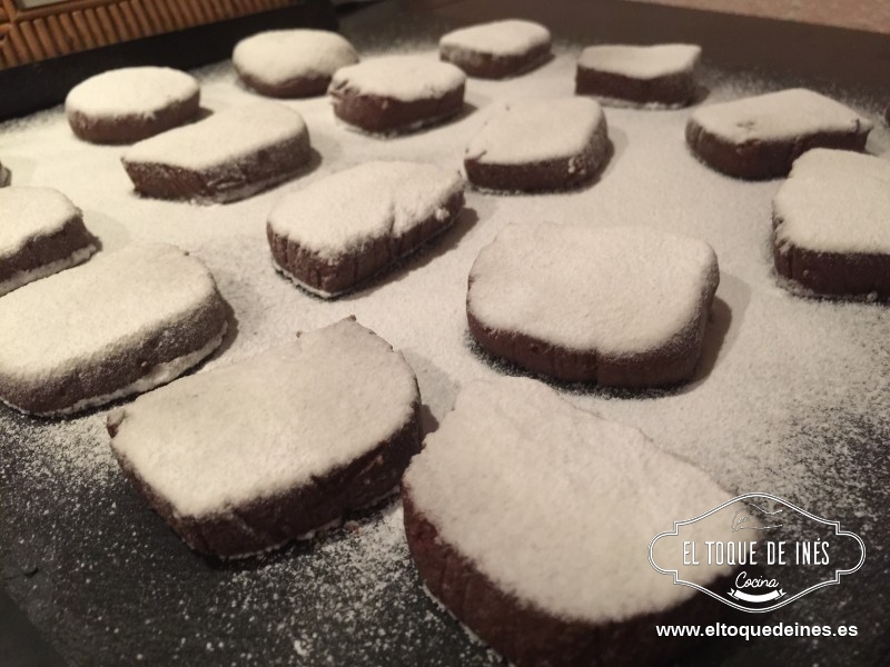 8. Cuando enfríen ayudados con una espátula los ponemos en otra bandeja forrada con papel vegetal y unos si queremos los espolvoreamos con azúcar glas y otros hacemos la cobertura y los bañamos.Cuando enfríen ayudados con una espátula los ponemos en otra bandeja forrada con papel vegetal y unos si queremos los espolvoreamos con azúcar glas y otros hacemos la cobertura y los bañamos.